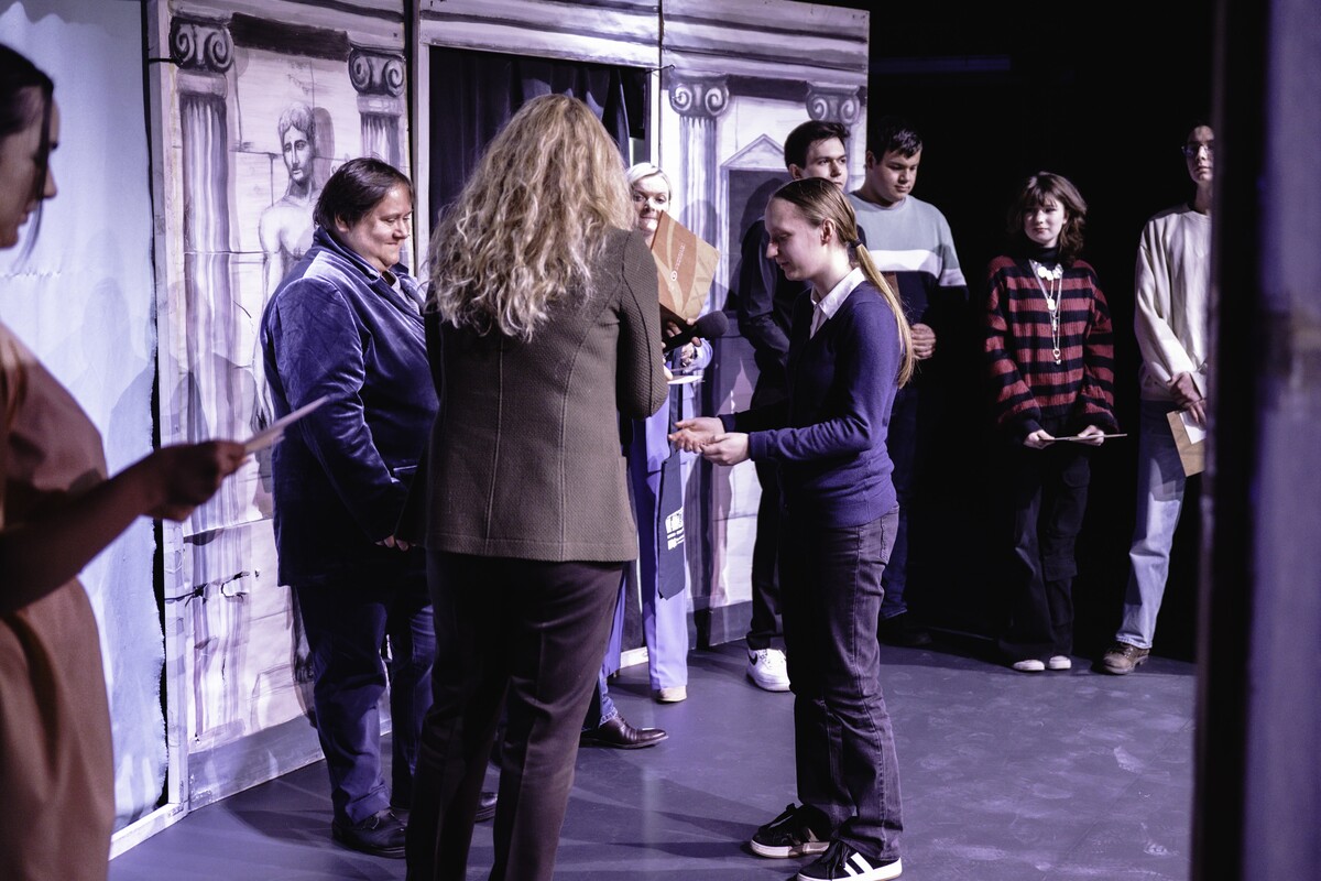 Nagrody w konkursie mitologicznym wręczała Ambasador Republiki Greckiej w Polsce, Pani Niki Kamba.