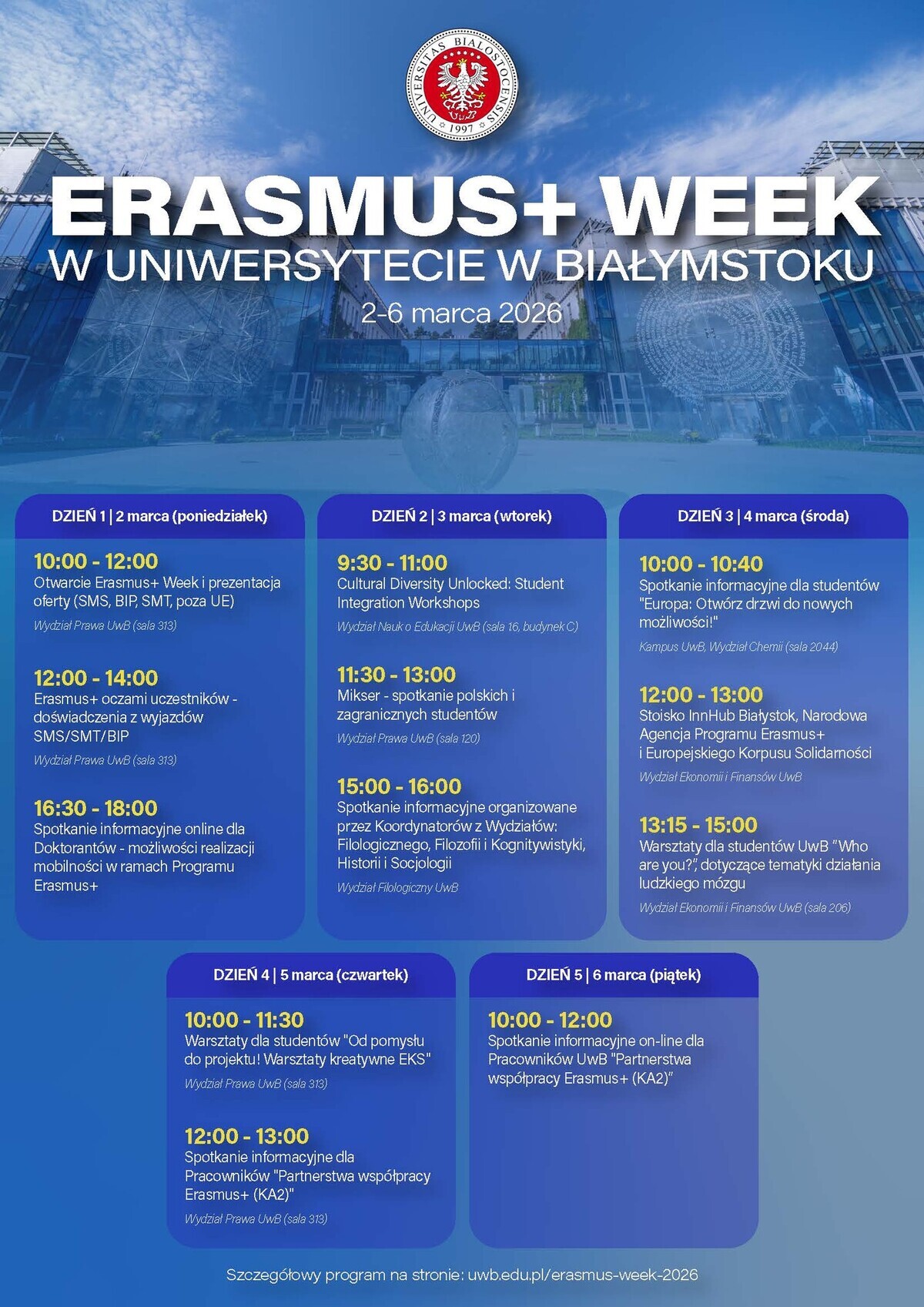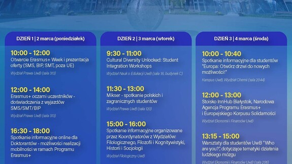 Spotkanie organizowane jest w ramach Erasmus Week na UwB (2–6 marca 2026 r.). W załączniku przesyłamy grafikę z pełnym programem wydarzenia.
