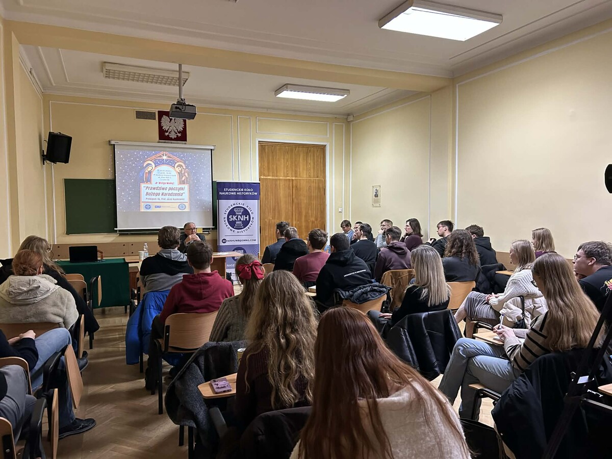 Wystąpienie poświęcone było historycznym i kulturowym uwarunkowaniom narodzin jednego z najważniejszych świąt w tradycji chrześcijańskiej. Prelegent w przystępny, a zarazem pogłębiony sposób przedstawił wyniki badań nad wczesnochrześcijańskimi źródłami, zapraszając słuchaczy do krytycznej refleksji nad genezą Bożego Narodzenia. Wykład spotkał się z dużym zainteresowaniem studentów, czego wyrazem była ożywiona dyskusja oraz liczne pytania zadawane po zakończeniu wystąpienia.
